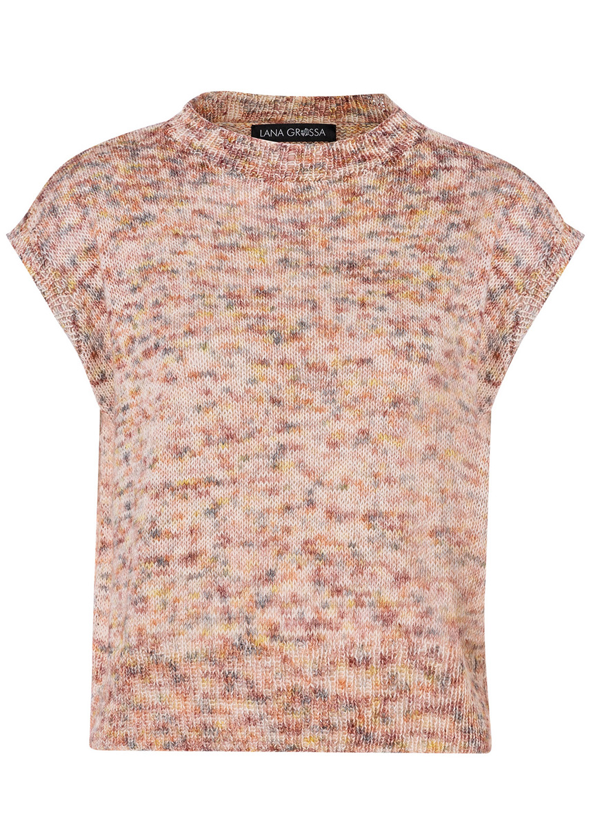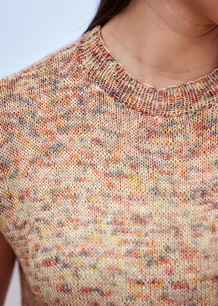 Lana Grossa Allora hand-dyed (76% Baumwolle, 14% Schurwolle (Merino superfine), 10% (Baby) Alpaca, Lauflänge 300 m/50 g), 200 (250 – 250) g Papita (Fb 270); Stricknadeln Nr. 3 und 3,5, 1 Rundstricknadel Nr. 3, 40 cm lang.
