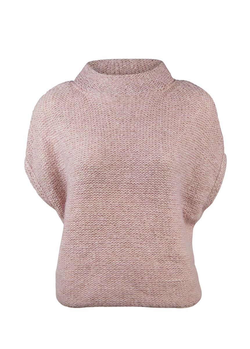 Lana Grossa Brigitte No. 2 (47 % Alpaka, 45 % Baumwolle, 8 % Schurwolle, Lauflänge 140 m/50 g) 250 (250 – 300) g Altrosa (Fb 12); Stricknadeln Nr. 5 und 7; eine 40 cm lange Rundstricknadel Nr. 7.