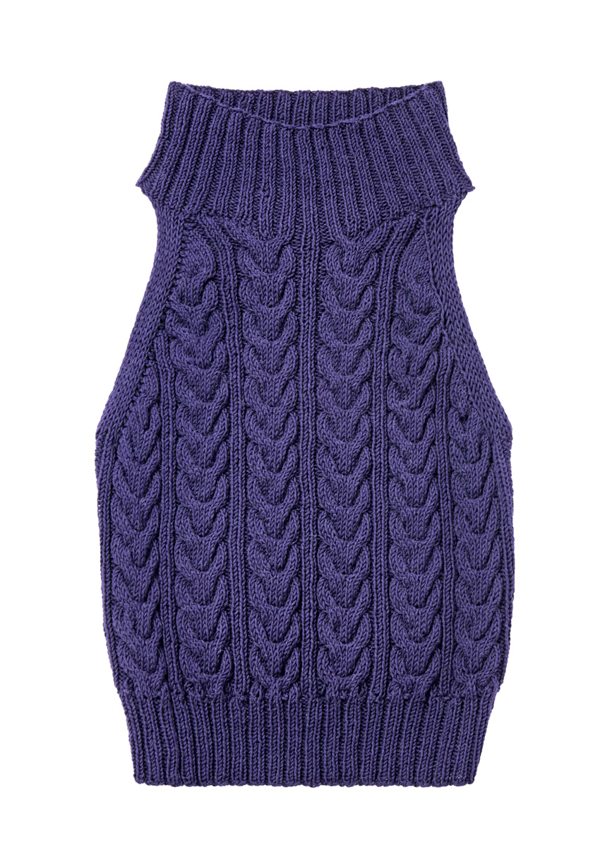 Garn von Lana Grossa, Qualität „Brigitte No. 4“ (80 % Baumwolle, 20 % Alpaka, Lauf länge 110 m/50 g): 300 (350/350/400) g in Nachtblau Nr. 15. Stricknadeln 4 und 4,5 (wenn Sie locker stricken) oder 4,5 und 5 (wenn Sie fest stricken) – wichtig ist, dass Sie auf die Angaben in der Maschenprobe kommen. 1 kurze Rundstricknadel 4 (wenn Sie locker stricken) oder 4,5 (wenn Sie fest stricken). 1 Zopfnadel.