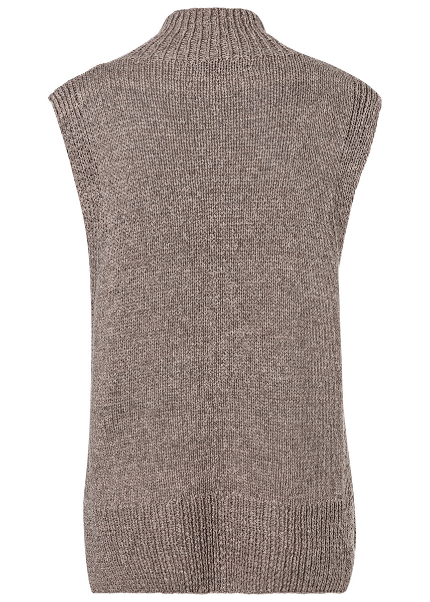 Bändchengarn aus Merinofasern und ungefärbter Mako-Baumwolle sorgt hier für einen edlen Mélange-Effekt. Damit sich der Kragen elegant an den Hals schmiegt, wird nach einigen Zentimetern die Nadelstärke gewechselt.