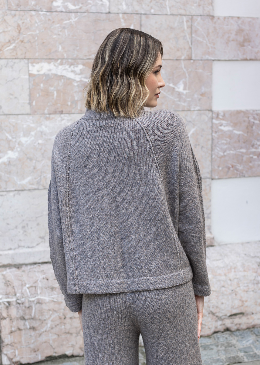 Der Pullover wird nahtlos in einem Stück von oben nach unten gestrickt. Er hat eine Gesamtlänge von 58 (60 - 62 - 64 - 66 - 68) cm und eine Brustmehrweite von 40 cm bei 80 cm Brustumfang (37 cm bei 88 cm Brustumfang - 32,5 cm bei 96 cm Brustumfang - 26,5 cm bei 104 cm Brustumfang - 19,5 cm bei 116 cm Brustumfang - 13 cm bei 128 cm Brustumfang).