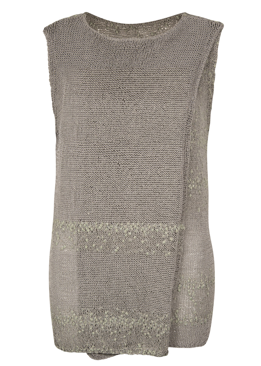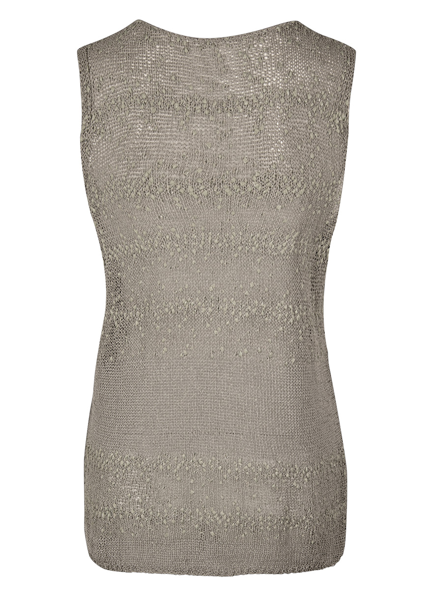 Vorne schlicht und hinten raffiniert gewickelt: Wer modische Extravaganzen mag, wird dieses Top sicherlich lieben. Hübsch ist auch der Mix aus schlichtem und genopptem Garn. Und der leicht transparente Look, der sexy und richtig schön sommerlich wirkt.
