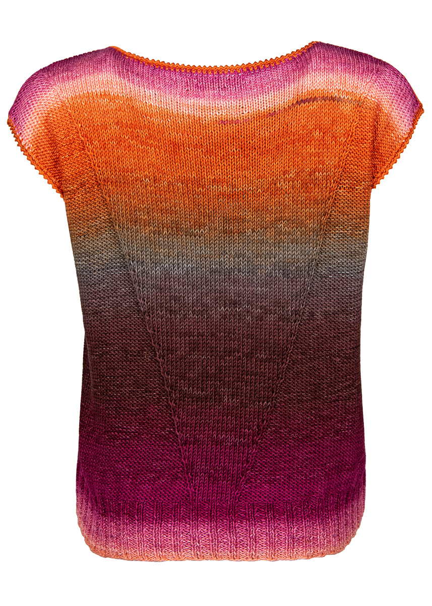 Lana Grossa Gomitolo Aloha (50% Baumwolle, 50% Viskose, Lauflänge 250 m/100 g), 300 (400 – 400) g Brombeer/Rotviolett/ Fuchsia/Lachs/Orangerot/Graubraun/ Grau/Pflaume (Fb 309); Stricknadeln Nr. 3,5 und 4, 1 Häkelnadel Nr. 3,5.