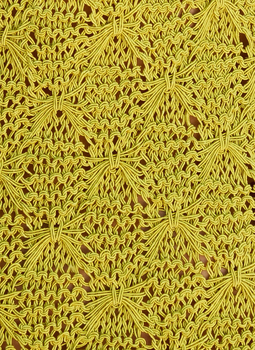Lana Grossa-Qualität „Secondo” (55 % Baumwolle, 25 % Polyamid, 20 % Seide, LL = ca. 125 m/50 g): ca. 500 (550) g Pistazie (Fb. 73); Stricknadeln Nr. 4, 5,5 und 7, 1 Rundstricknadel Nr. 4, 60 cm lang, 1 Wollhäkelnadel Nr. 5 zum Einknüpfen der Fransen.