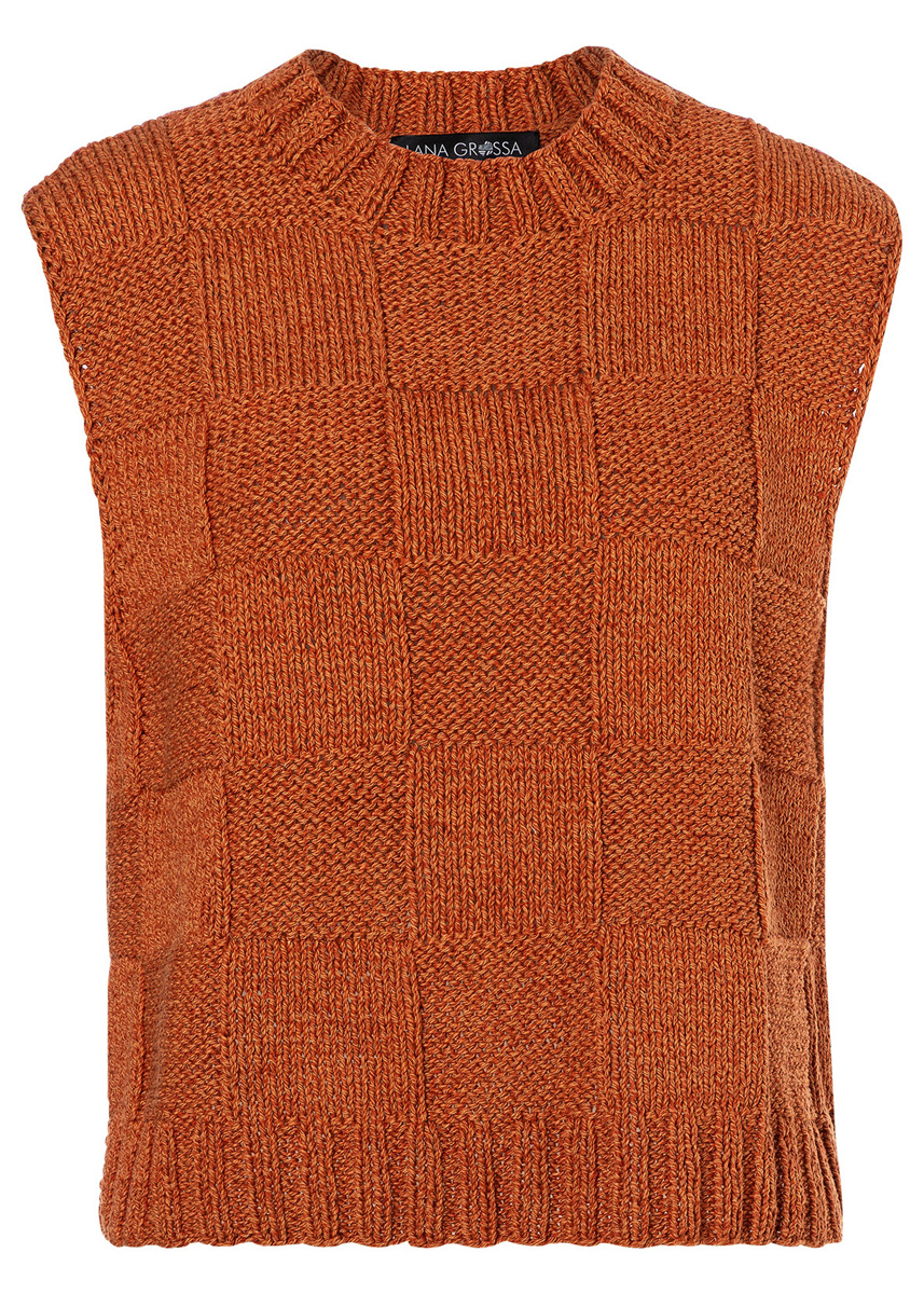 Rotbraun meliertes Seidenmixgarn und ein simples Schachbrettmuster – fertig ist das Wow-Piece für Anfänger und Ungeduldige.