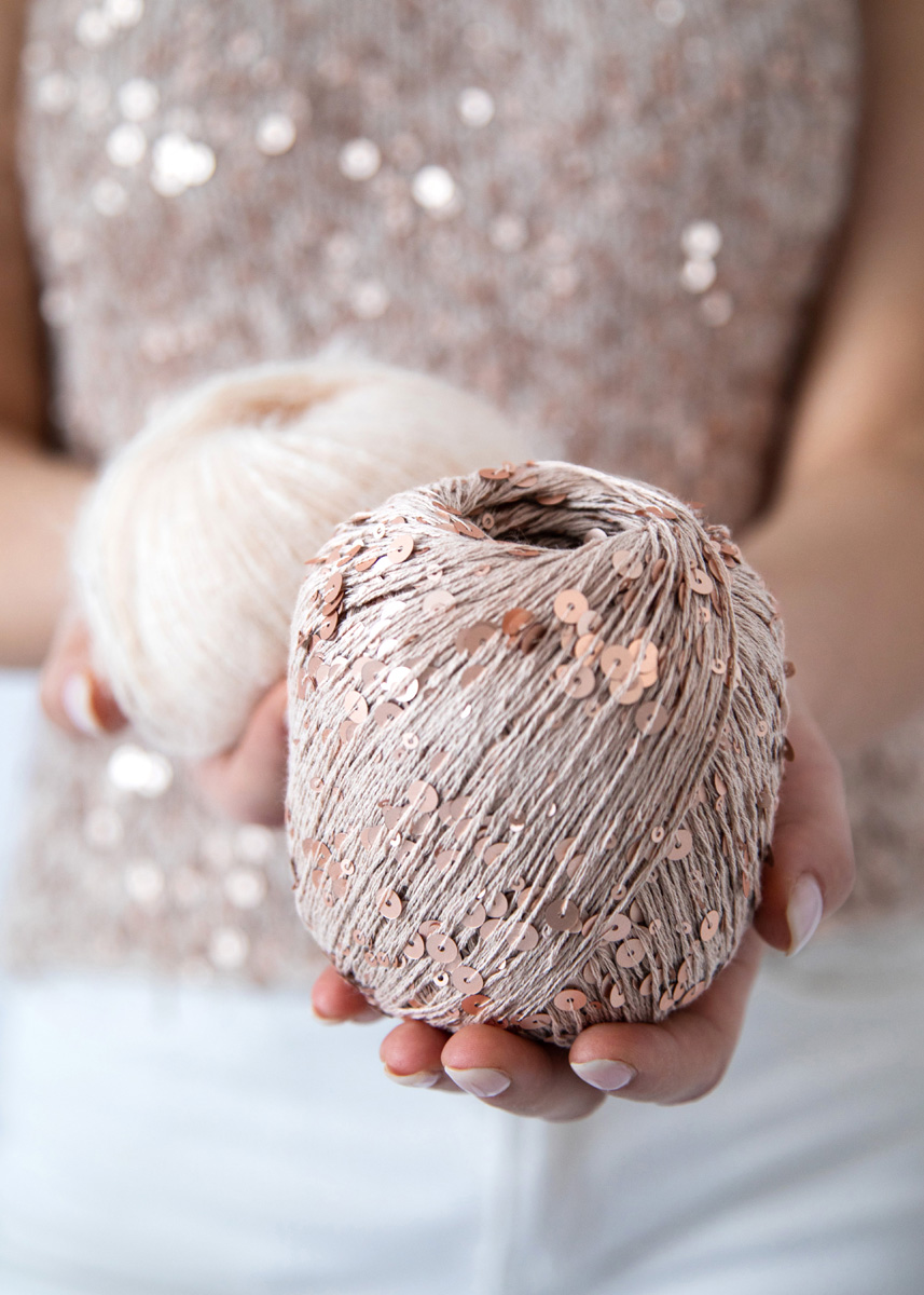 Als perfekte Ergänzung gibt es das Scrunchie Mila – ideal zur Verwertung von Garnresten. Das stilvolle Accessoire rundet dein Outfit harmonisch ab und setzt einen feinen, schimmernden Akzent.