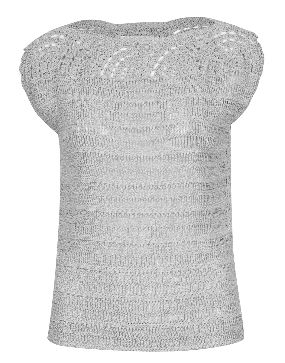 Was so lässig aussieht, ist etwas für Fortgeschrittene und Geduldige. Das Bogenmuster erfordert Aufmerksamkeit und die an sich einfachen Doppelstäbchen sollten gleichmäßig gearbeitet werden. Aber wer dran bleibt wird mit einem It-Piece des Sommers belohnt. Versprochen!