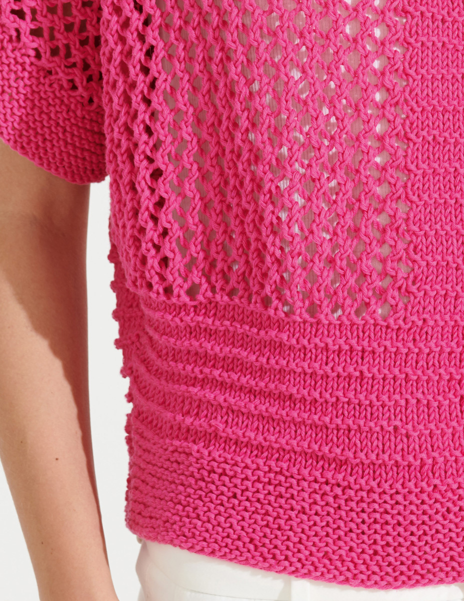 Lana Grossa Organico (100% Bio Baumwolle, Lauflänge 90 m/50 g), 350 (400 -450) g Himbeer (Fb 69); Stricknadeln Nr. 5,5, 1 Rundstricknadel Nr. 5, 40 cm lang.
