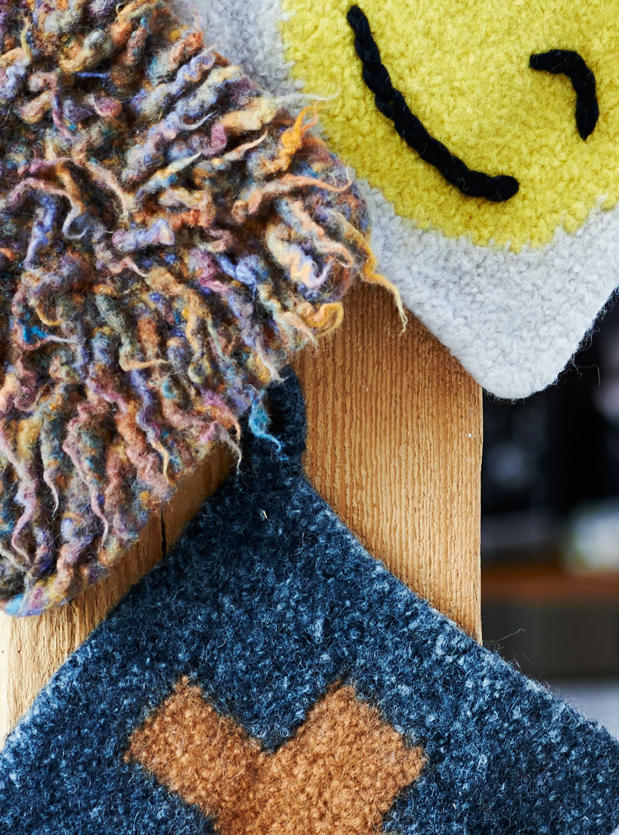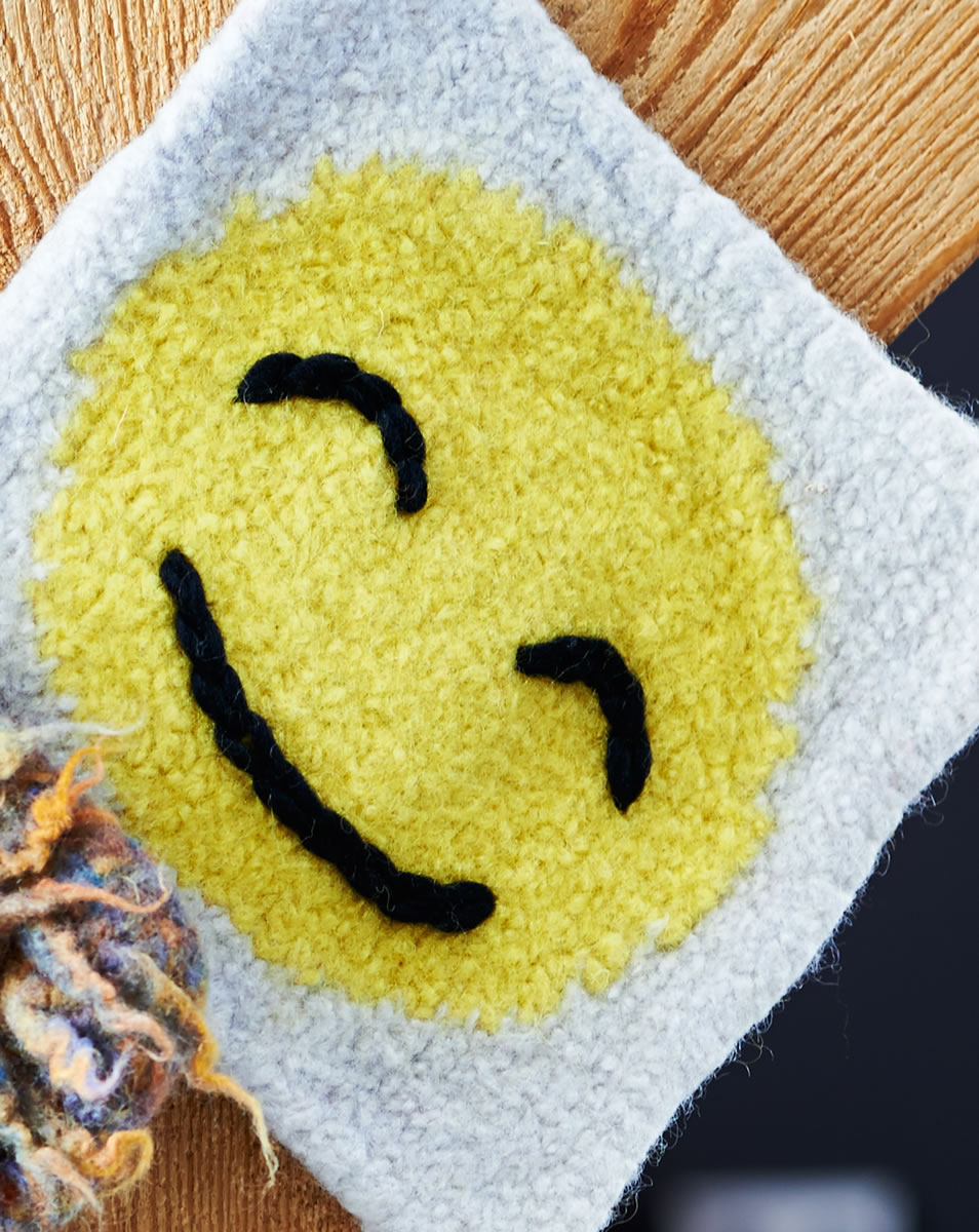 Lana Grossa Qualität „Feltro“ (100% Schurwolle, LL = 50 m/50 g), ca. 150 g Grège (Fb 51) und ca. 100 g Knallgelb (Fb 47), ein Rest in Schwarz (Fb 6), Stricknadeln Nr. 8, 1 Häkelnadel Nr. 8 und 1 Wollsticknadel.