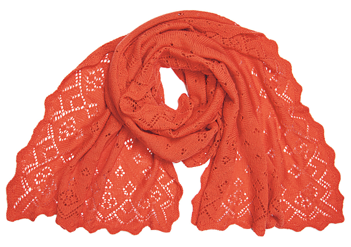 Federleicht, warm und wunderschön ist dieses Tuch aus reiner, feiner Merinowolle. Das Ajourmuster verleiht ihm den duftigen Look – und eine verspielte Bogenkante.