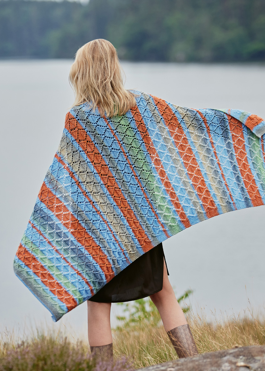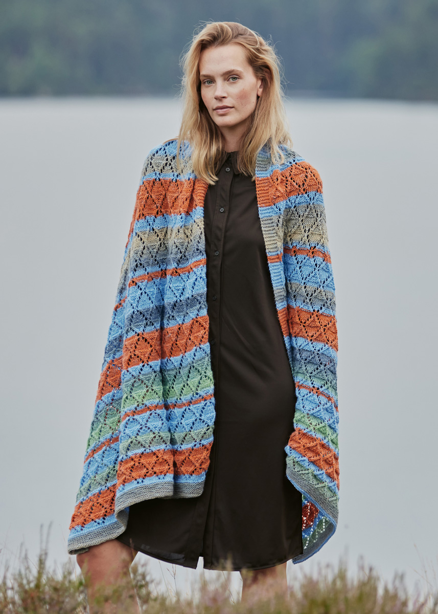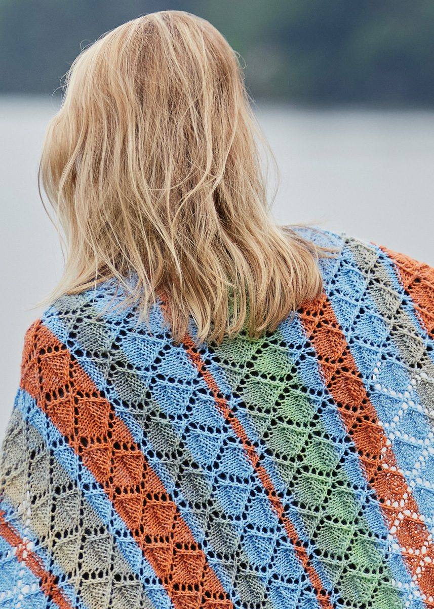 Lana Grossa-Qualität „Gomitolo Tosca“ (60 % Schurwolle, 40 % Polyacryl, LL = ca 700 m/200 g): ca 400 g Graugrün/ Veilchenblau/Terrakotta/Grau (Fb 167); Stricknadel Nr 4.