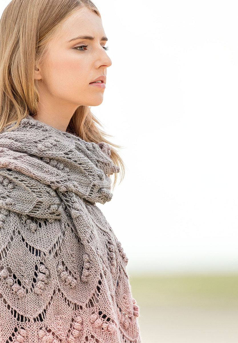Lana Grossa-Qualität „Gomitolo 200 Dégradé“ (50 % Schurwolle, 50 % Polyacryl, LL = ca. 700 m/200 g), 200 g Hellgrau/Rosa (Fb 303). Strick-Nd Nr. 6,5.