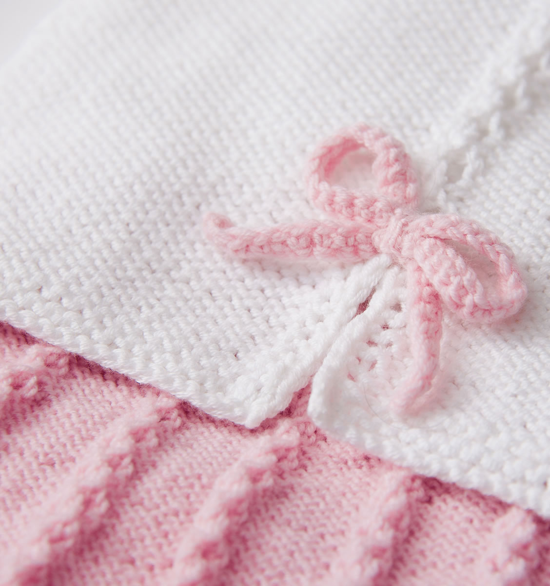 Taufe, Hochzeit oder ein Spaziergang über eine Sommerwiese – nicht nur wir, sondern auch unser Minime will zu besonderen Anlässen etwas Hübsches anziehen! Süß für unseren kleinen Schmetterling: eine weiße Tunika, dazu die rosa Hose mit gestrickten „Biesen“ und niedlichen Schleifchen geschmückt. Babys tragen dazu gestrickte Schühchen und falls es kühler ist machen Jacke und Mütze den Festtags-Look perfekt.