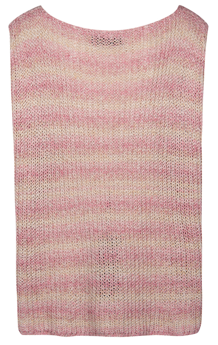 Lana Grossa-Qualität „Solo Lino Print” (80 % rec. Leinen (Viskose), 20 % Leinen, LL = ca. 240 m/100 g): ca. 400 (500) g Hellbeige/ Rosa/Nelke/Altrosa (Fb. 157); Stricknadeln Nr. 3,5 und 4.