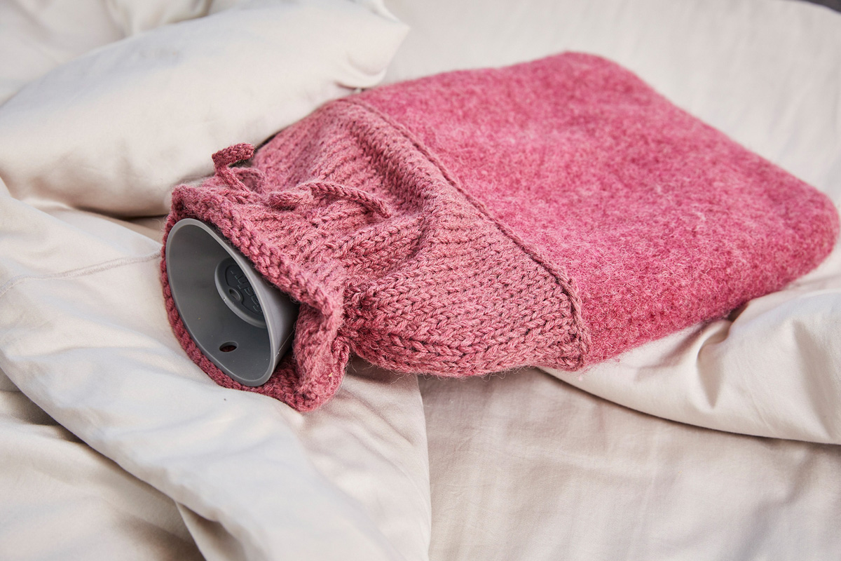 Größe: Wärmflaschenhülle: 24 x 36 cm, Filzteil: 36 x 31 cm (vor dem Filzen), ca. 24 x 22 cm (nach dem Filzen)