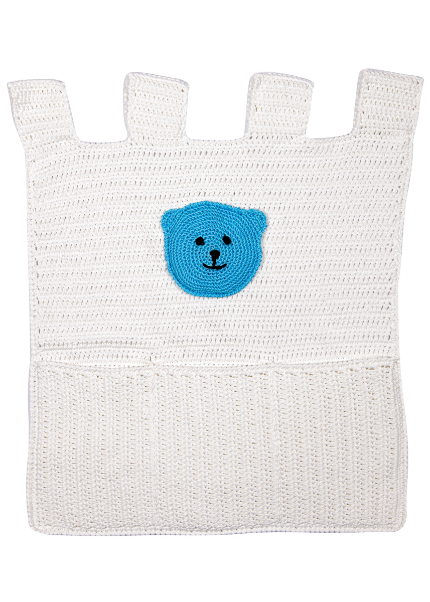 Lana Grossa Organico (100 % Baumwolle, Lauflänge 90 m/50 g) 350 g Weiß (Fb 7), Cotone (100 % Baumwolle, Lauflänge 125 m/50 g) 50 g Türkis (Fb 9) und Meilenweit 100 G Merino (75 % Schurwolle (Merino extrafine), 25 % Polyamid, Lauflänge 420 m/100 g) 100 g Schwarz (Fb 2402); Häkelnadeln Nr. 3,5 und 4,5; Füllwatte.