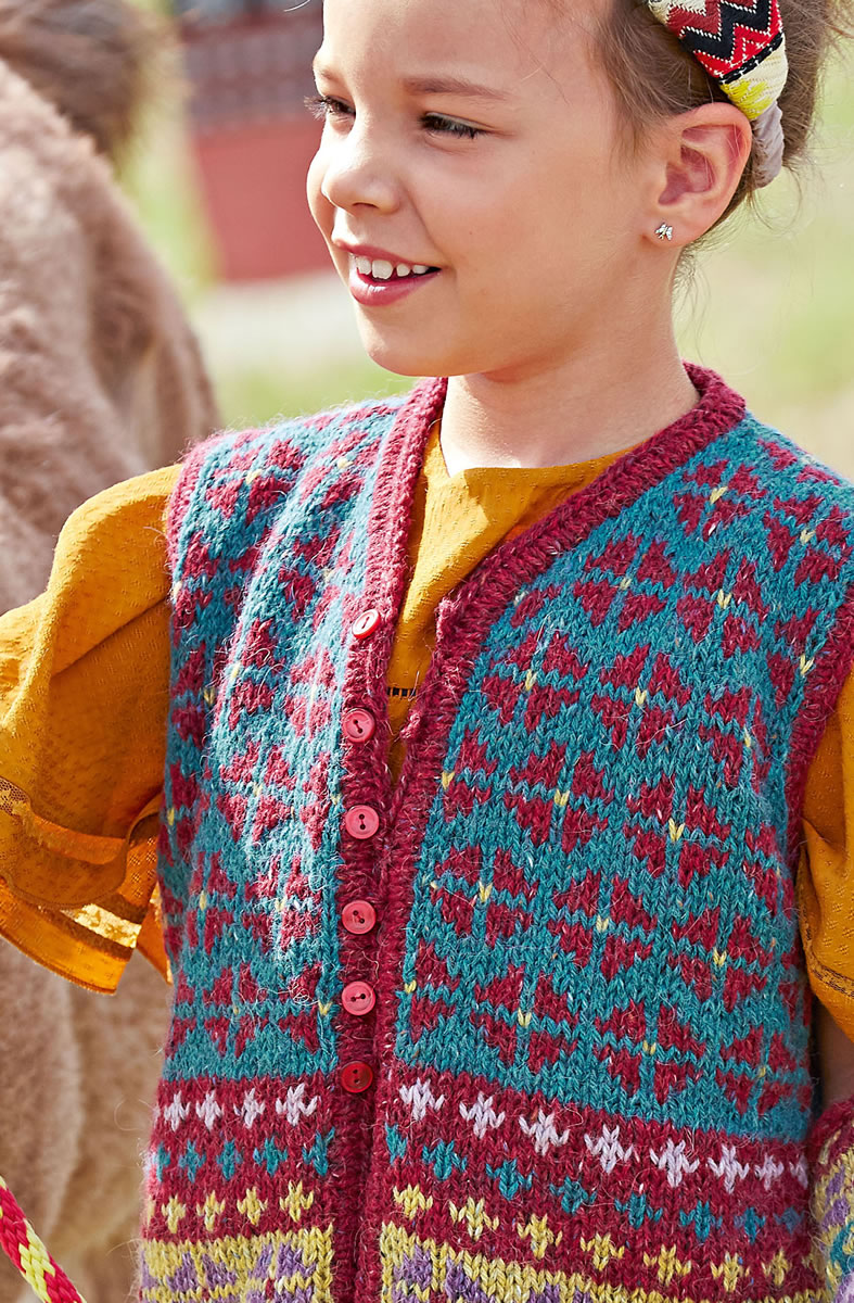 In Peru gibt es nicht nur Alpakas, hier werden auch so schöne, bunte Jacquard-Muster gestrickt! Die schmücken diese Weste, aber auch die Fingerhandschuhe mit den langen Stulpen und das Stirnband - und was das Coolste ist: je bunter gemixt desto schöner!