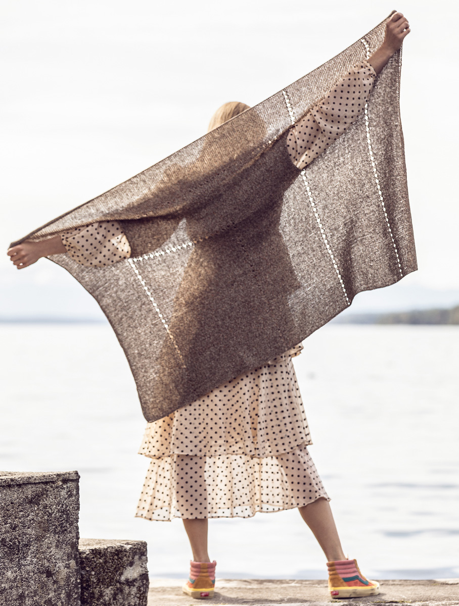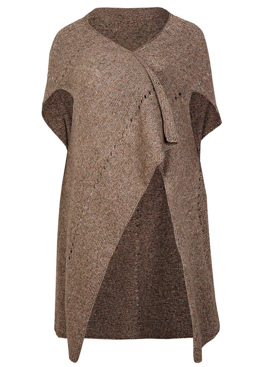 Lana Grossa Ecopuno Print (72% Baumwolle, 17% Schurwolle Merino, 11% Baby Alpaca, Lauflänge 215 m/50 g), 350 (400) g Graubraun bunt (Fb106); 1 Rundstricknadel Nr. 4,5, 80 cm lang, 1 Häkelnadel Nr. 3,5.