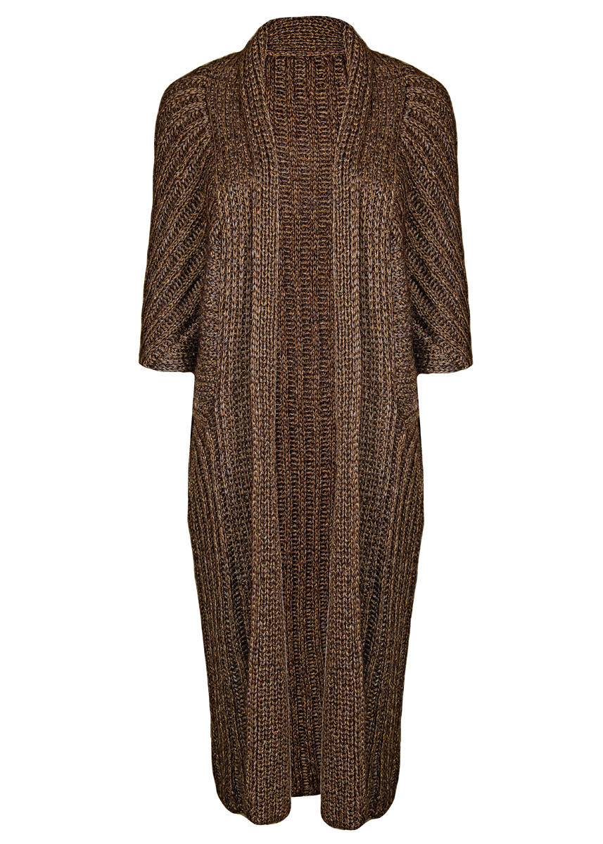 Glanzeffekte, Bronzetöne und plastische Rippen betonen den skulpturalen Look dieser Weste. Genauso wie die Achselkeile, die außerdem für mehr Tragekomfort sorgen.