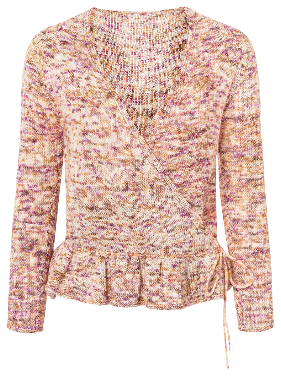 Was dieses Cache Coeur von Modell 6 (Seite 13) unterscheidet? Lange Ärmel. Und die dezente Garnschattierung mit zeitlosen Naturtönen und einem Schuss Trend-Pink.