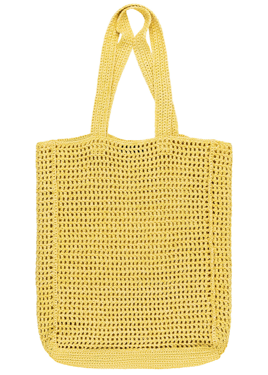 Durch sein luftiges Filetmuster wirkt dieser XL-Shopper überraschend leicht. Der „staubige“ Gelb-Ton unterstreicht den entspannten Sommer-Look.