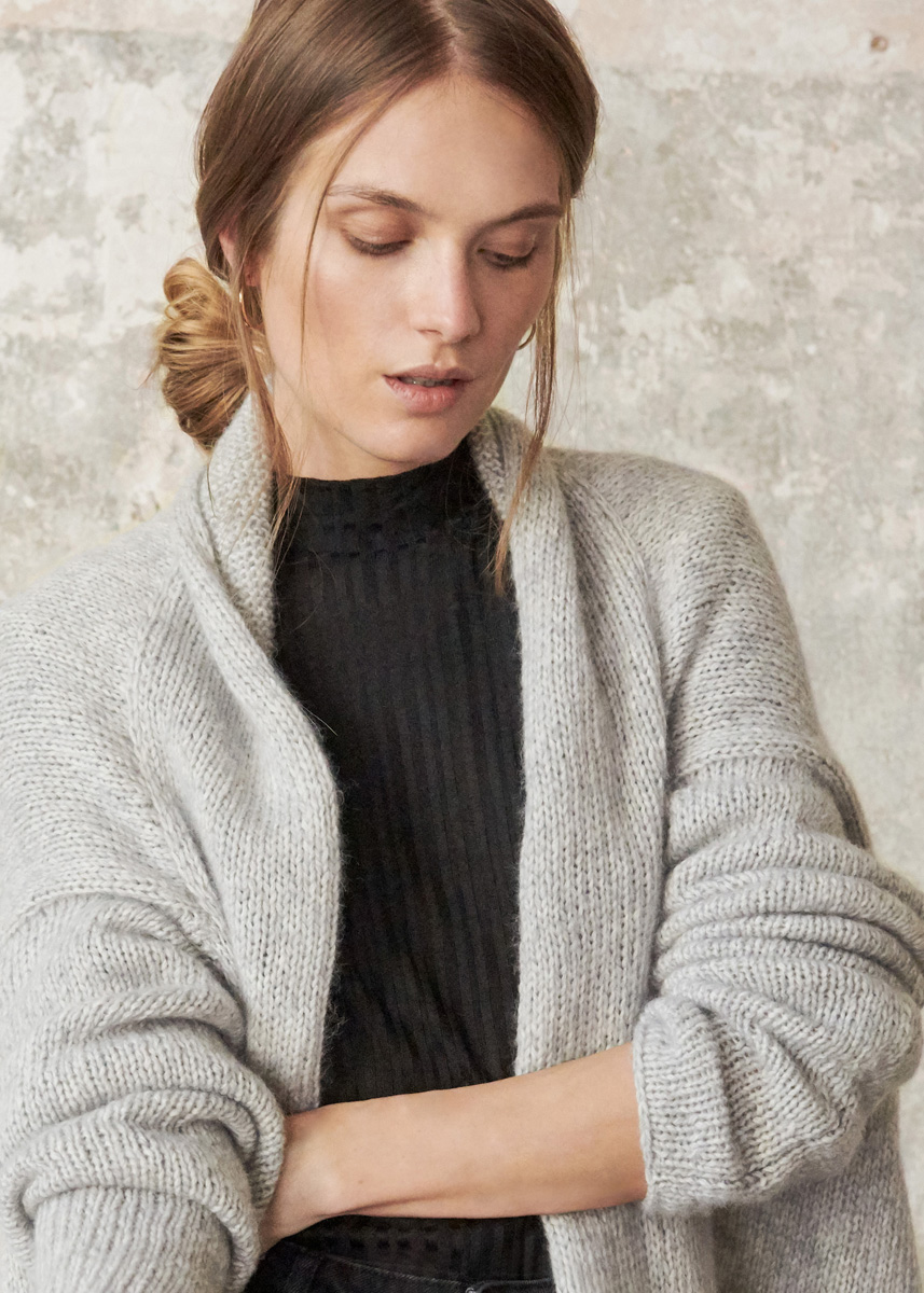 Hochkarätiger Alpakamix und eine raffinierte Form ergeben hier einen spektakulären Blazer-Ersatz. Selbst der Rücken sorgt für Entzücken – mit dekorativen, betonten Abnahmen. Schön gemütlich: der breite Schalkragen und die überlangen Ärmel.