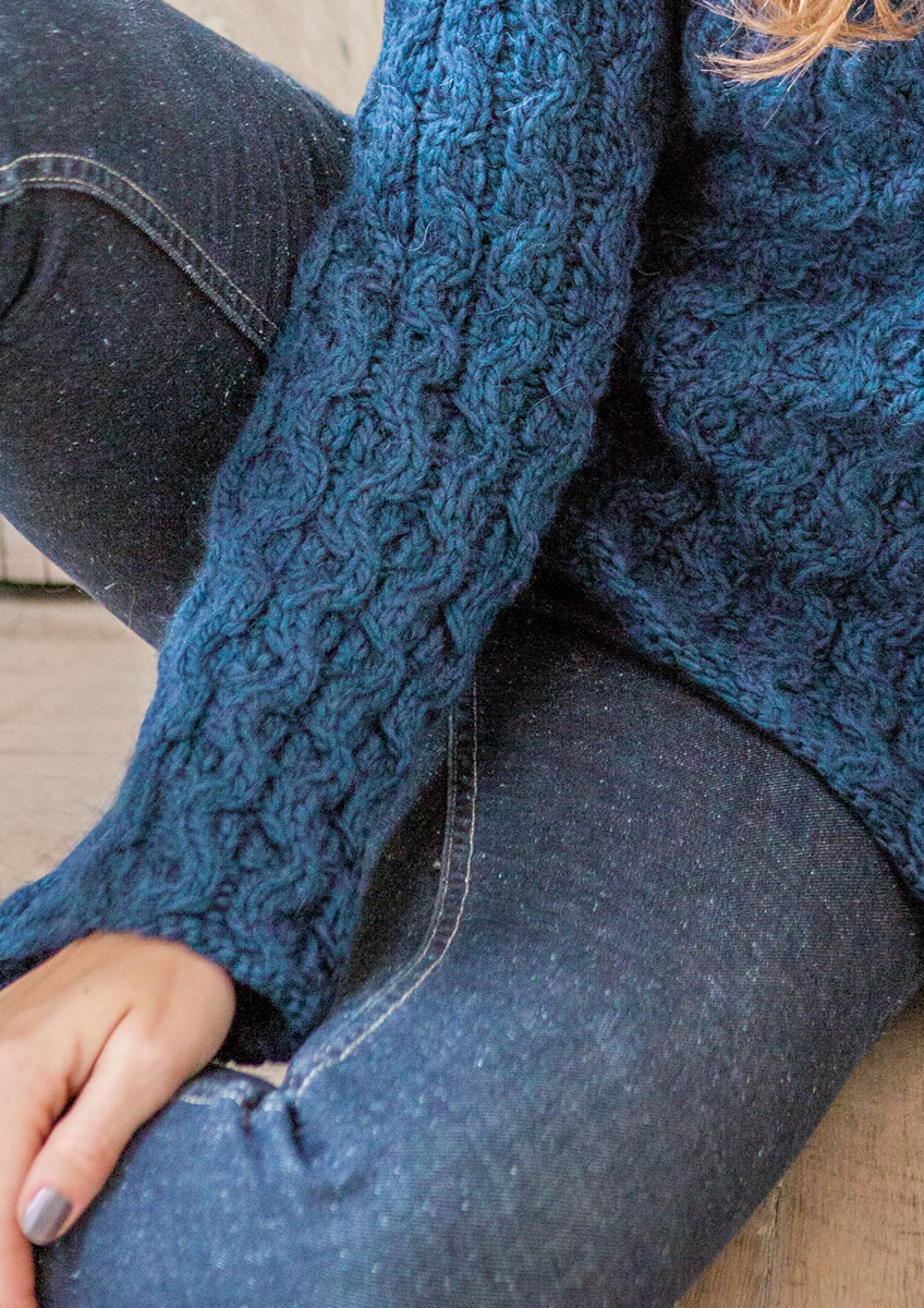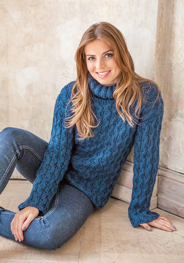 Lana Grossa „Fiore” (70% Schurwolle, 30% Alpaka, LL = 60 m/50 g) 800 g Petrol (Fb 10). Stricknadeln Nr. 7, eine Rundstricknadel Nr. 7.