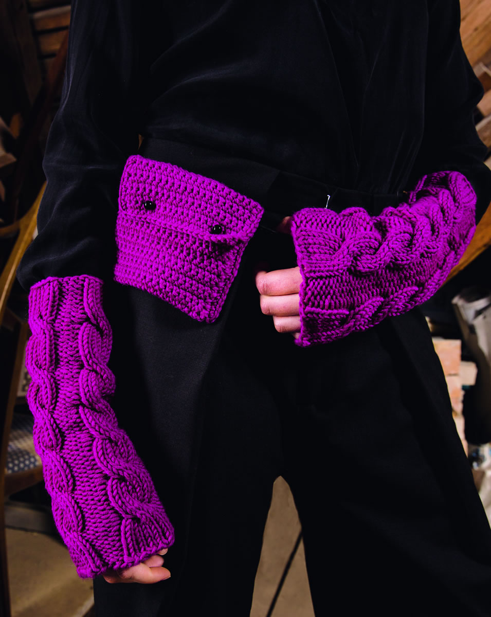 Du willst einen Wow-Auftritt? Bekommst du! Dafür strickst du dir diese Mütze, Stulpen mit Zopfmuster – und die kleine Gürteltasche ist auch schnell gehäkelt. Alles natürlich in diesem leuchtenden Magenta-Ton. Du kannst sicher sein, das fällt ins Auge!