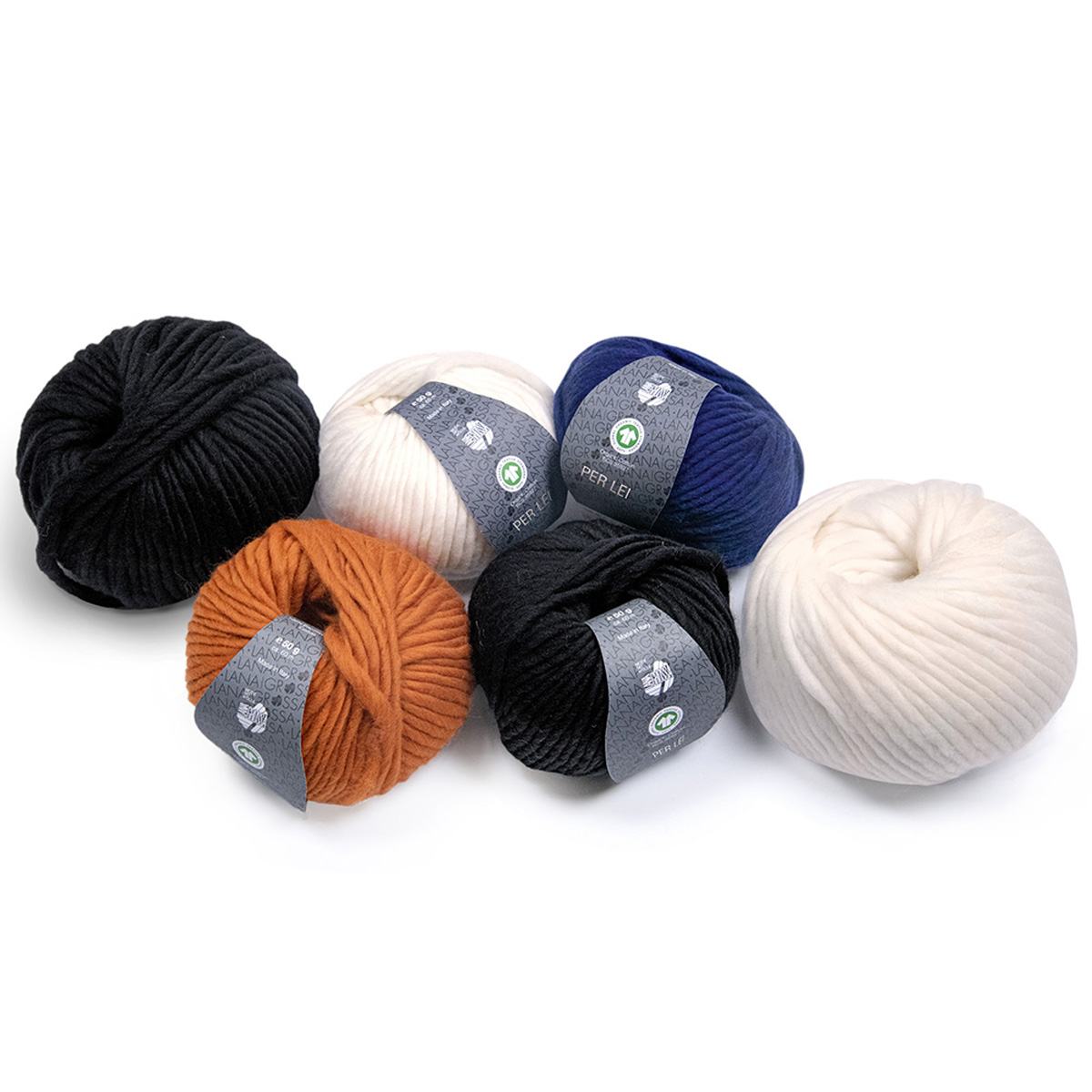 73 % Schurwolle Merino, 25 % Polyamid, 2 % Polyester