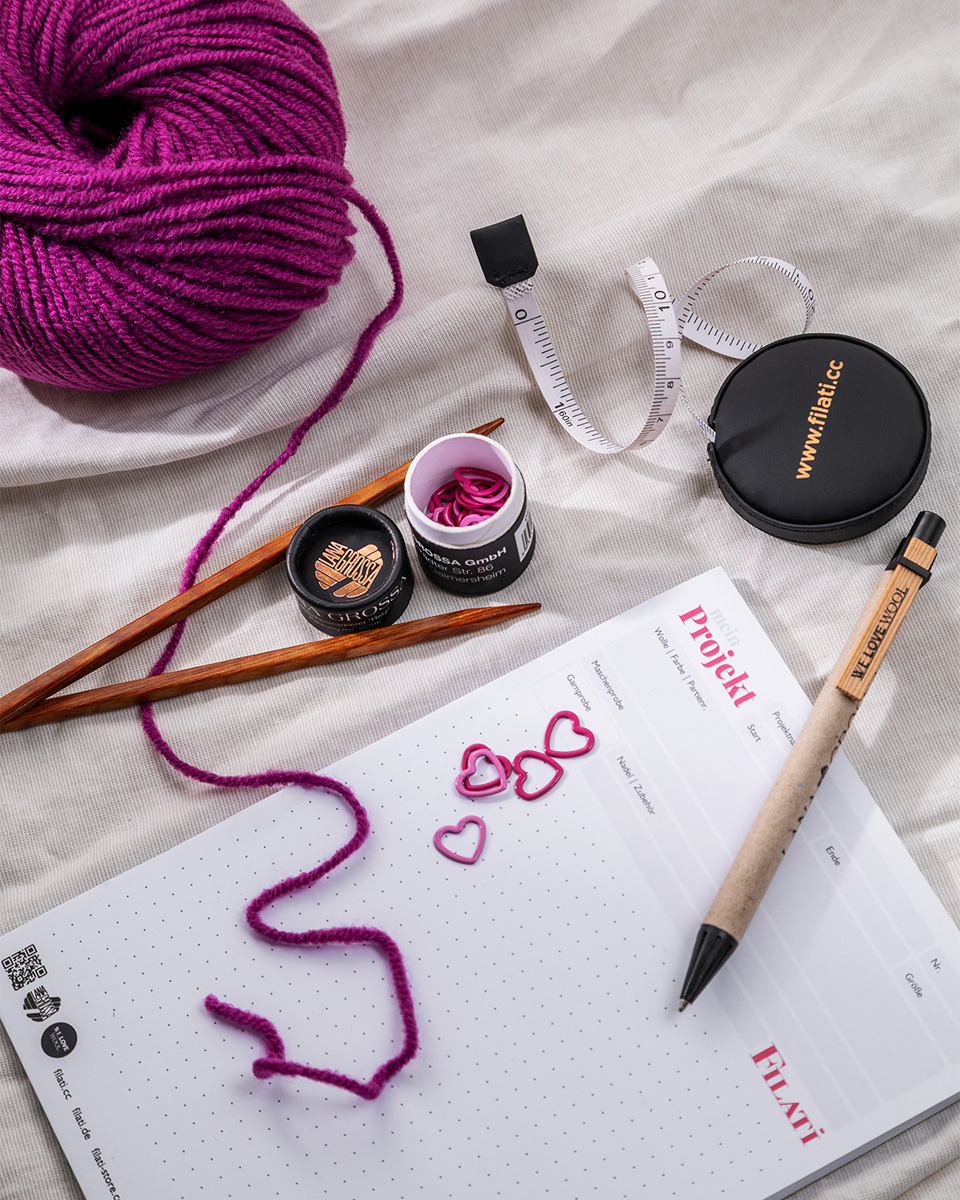 Der FILATI Projektblock ist der ideale Begleiter für alle, die ihre Strick- und Häkelideen nicht nur im Kopf, sondern auch strukturiert auf Papier festhalten möchten. Speziell für kreative Projekte entwickelt, helfen dir die übersichtlich gestalteten Seiten dabei, den Überblick zu behalten – vom ersten Entwurf bis zur letzten Masche.